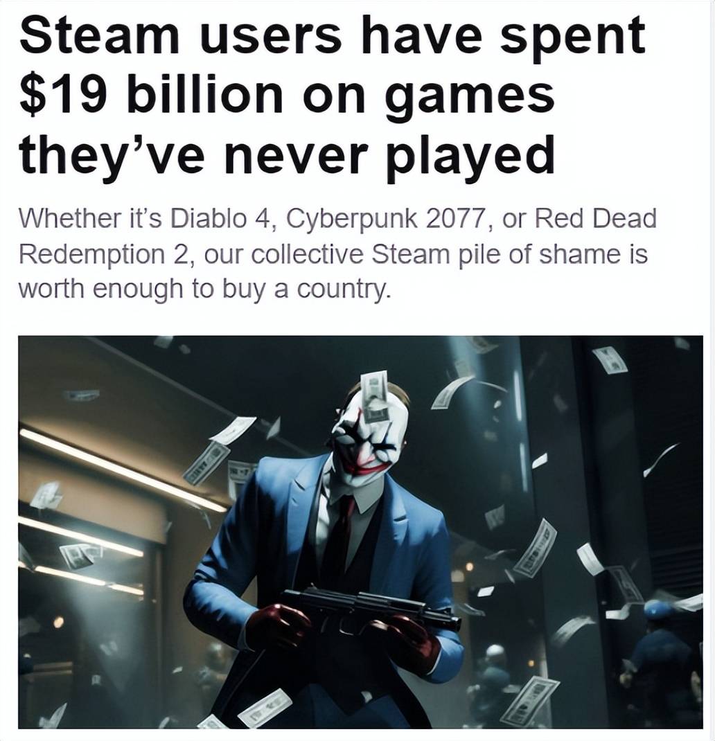 去年外媒PCGamesN,就曾通过SteamIDFinder数据库统计过一组数据。 即——Steam 预计有7300万名玩家,在购买了游戏之后却不去玩。并且,这些被用户购买后,却养在库存中当“电子仓鼠”的游戏,总价值超过了190亿美元。