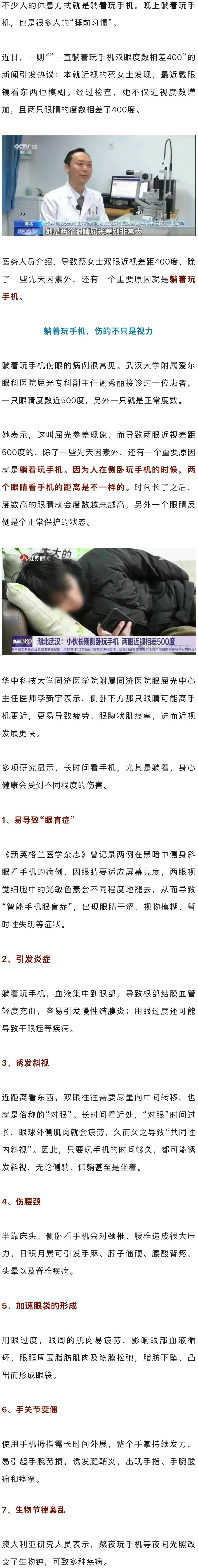 躺着玩手机,可能触发这几种伤害!