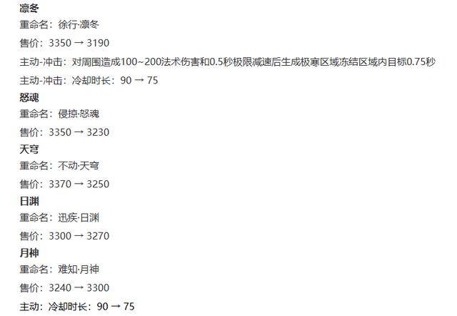 辉月削弱:售价增加70金币,法攻降低10点,被动CD缩短15秒。