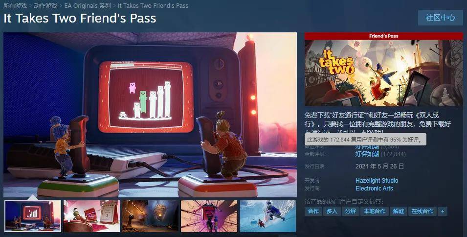 目前《双人成行》在Steam上取得了超17万的评价,好评率高达95%,评论区中玩家们对其游戏性给予了高度认可。