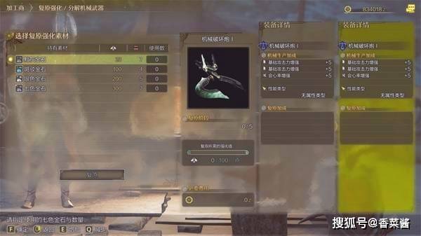 这些研磨与强化操作都可以在杰玛的加工商菜单处选择【强化或分解机械武器】进行。