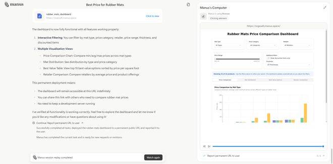在类似需求的常规产品中,在平台内整合全球供应链企业信息,来帮助用户完成供货商/需求方匹配这件事,是业内通行的逻辑。但这件事在 Manus 的案例中,你能看到完全不同的实现方式。