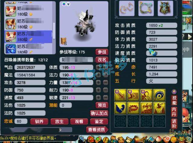 11技能净台法防配速血宠童子,高内丹打的是电魂闪。