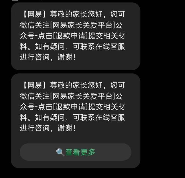 记者两次拨打网易家长关爱平台收到的提示短信。手机截屏
