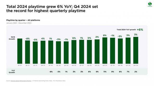 据调查数据显示,2024年玩家们在游戏中所投入的时间比去年增长了6%,其中PC和Xbox玩家数量没有太大变化,PS5玩家倒是增长了21%,不过该机构没有解释背后用户群体变化的原因。