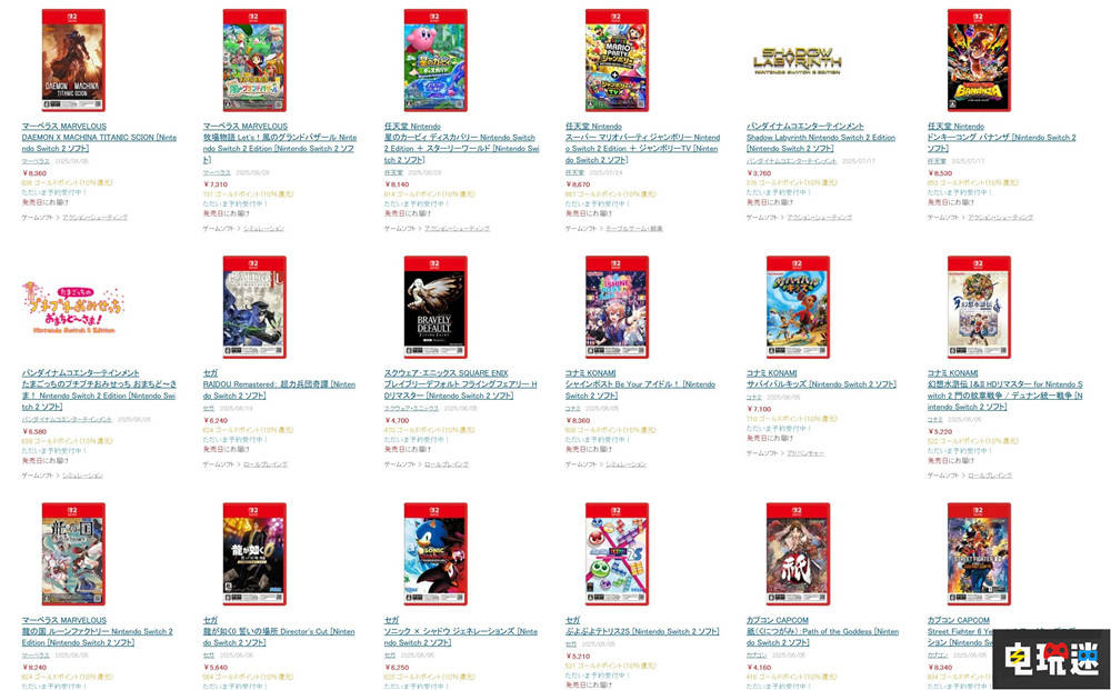 目前,日本地区的Switch 2游戏已经开启预售,而根据Gematsu的统计,日本零售商友都八喜目前列出的11款新的第三方Switch 2专属游戏实体卡带封面都印有明显的黑色钥匙标识,确定为“钥匙卡”。第三方中只有Marvelous的《符文工房:龙之天地》与《牧场物语来吧!风之繁华集市》两款游戏实体版不是“钥匙卡”,而这两款游戏是类似于“Switch 2 Edition”的原版+升级内容的形式,甚至可以将红卡插在Switch上玩原版。