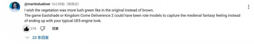 在评论区,不少网友对维塔士的工作表示赞赏,但也有网友指出,希望植被能像原版那样更翠绿一些,而不是棕色,感觉缺少了一点灵魂。仔细看,你会发现《上古卷轴4:湮灭重制版》和维塔士同样采用虚幻5引擎开发的《合金装备3:重制版》在色泽上几乎是一样。