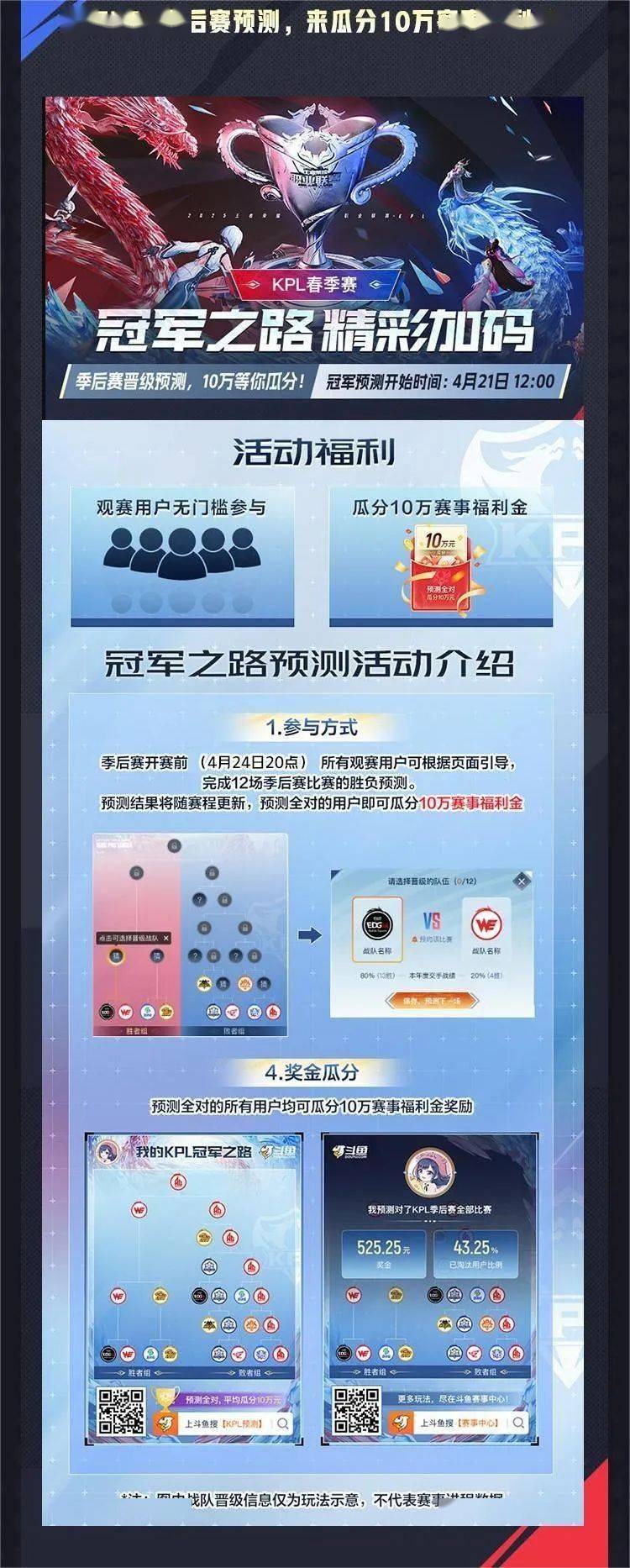斗鱼独家返场【KPL冠军之路】预测活动,全部预测正确的水友可一起瓜分10万元赛事福利金!