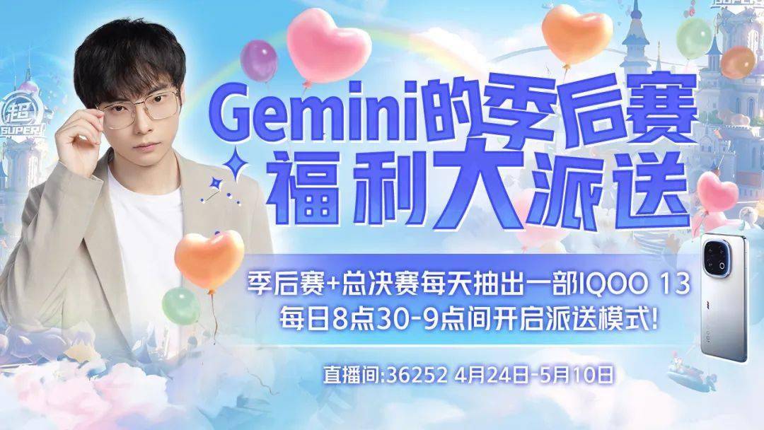 Gemini将在每个季后赛赛事日20点30-21点间,在直播间抽出一台IQOO 13手机!