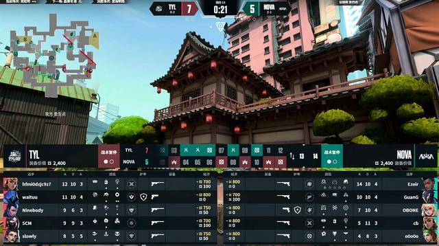 上半场天禄防守赢下手枪局,NOVA第3回合奖励局成功赢下,第4回合长枪对决,NOVA抱团打A,双方A点一波交火混战对掉三人,天禄回防二打二打赢残局,再度掌控比赛。天禄连拿三分,第7回合NOVA中夹A顺利赢下,但随后就被天禄打出一波翻盘,NOVA再度陷入“经济困境”。第11回合NOVA打B残局劣势,但Ezeir的“秦王绕柱”的残局处理成功拖包赢下,上半场最后两个回合NOVA连追两分,将比分定格在5-7。