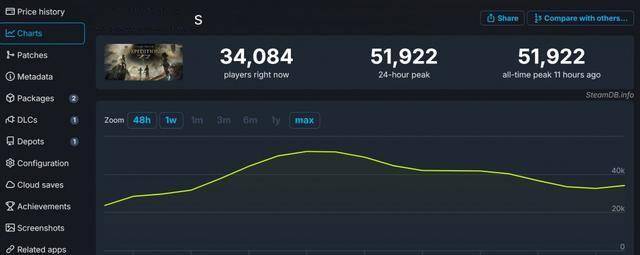 《光与影:33号远征队》在首发登陆Game Pass的情况下,Steam同时在线峰值仍然超过了5万人,随着周末的到来,峰值绝对会再上一层楼,突破7万应该没什么问题。
