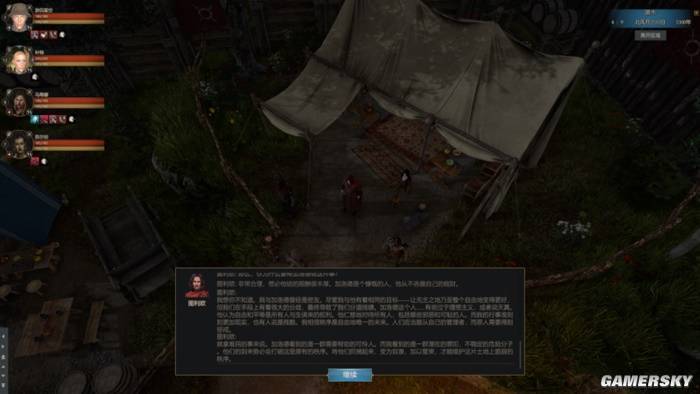但在游戏开始时,你几乎无法独自解决哪怕相当弱鸡的敌人,也就无法染指最稳定的收入来源。大地图上危机四伏,强盗野兽横行,在野外扎营还要派人放哨,否则非常容易遭受伏击。因此即使想要跑任务,也很容易在半路暴毙。只有足够的帮手,才能让你在自由地安全地生存下去。