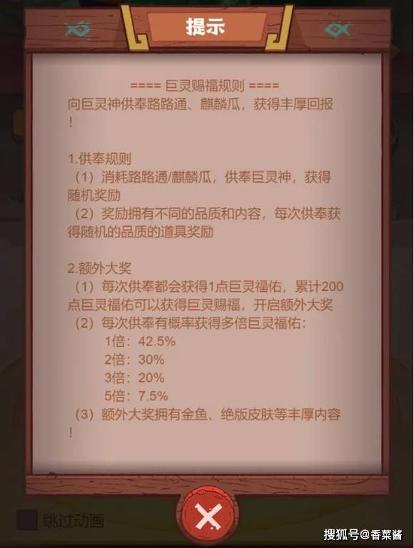 调整后,每次供奉时有概率获得多倍的巨灵福佑。