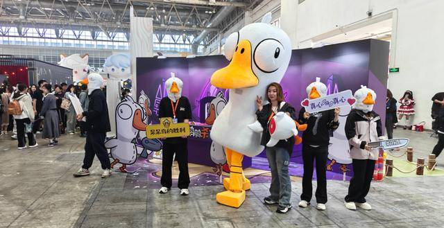 比如WAW上《羊了个羊》工作人员“喊路人挑战”,旁边《鹅鸭杀》工作人员拿出“纸片刀”背刺,吸引了不少玩家“尾随跟拍”。