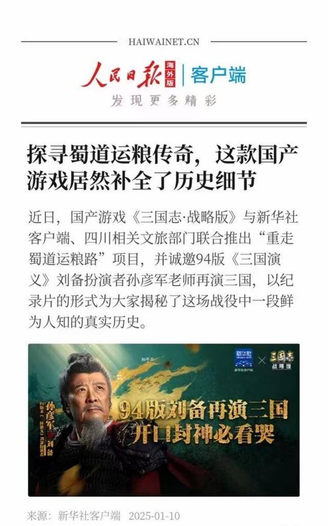 灵犀互娱的另一款游戏《三国志·战略版》也在推动传统文化传播方面取得了显著成效。2025年初,《三国志·战略版》联合新华社客户端和四川文旅部门发布了《重走蜀道运粮路》纪录片,旨在还原三国时期蜀道运粮的真实情况。该纪录片通过大量的历史文献研究和田野调查,揭示了定军山之战背后那段不为人知的故事,一经发布便在各社交平台上获得了千万播放量,受到了广泛关注。此外,游戏还与四川多地文旅部门合作,提供免票游览蜀道景区的福利,鼓励玩家实地感受三国历史与蜀地的特殊羁绊。