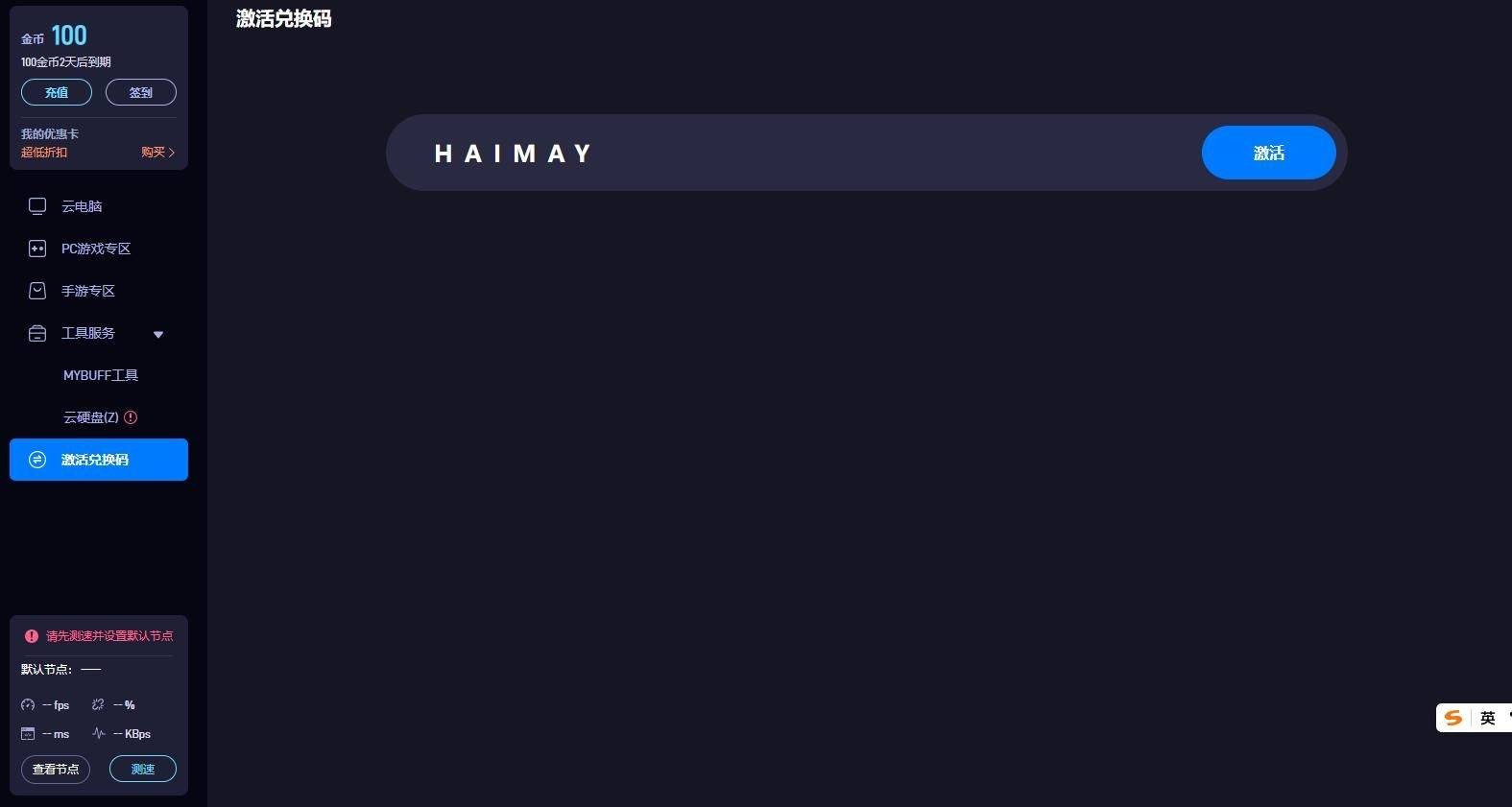 划重点:客户端左侧栏【激活兑换码】输入 HAIMAY,就可以领取免费时长。更适合不太了解云电脑,准备试试水的玩家轻度体验。