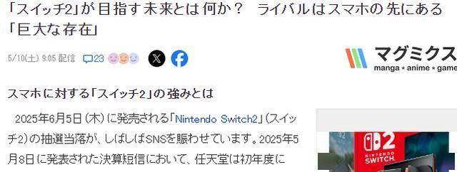 距离任天堂新一代游戏机Switch 2的6月5日正式发售越来越近,那么不以性能领先竞争对手的Switch 2未来真正宿命是什么?一起来看看日媒的分析。
