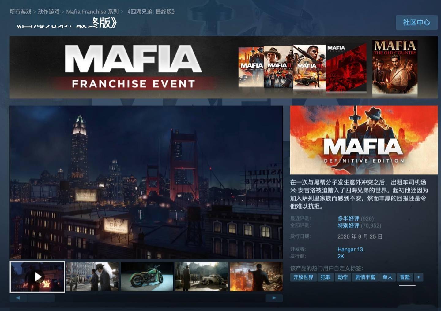 IT之家注意到,本作为 2002 年游戏《黑手党:失落天堂》的重制版。游戏于 2020 年 5 月公布,2020 年 9 月 25 日在 Windows、PlayStation 4 和 Xbox One 平台发行,Steam 页面(https://store.steampowered.com/app/1030840/_/)