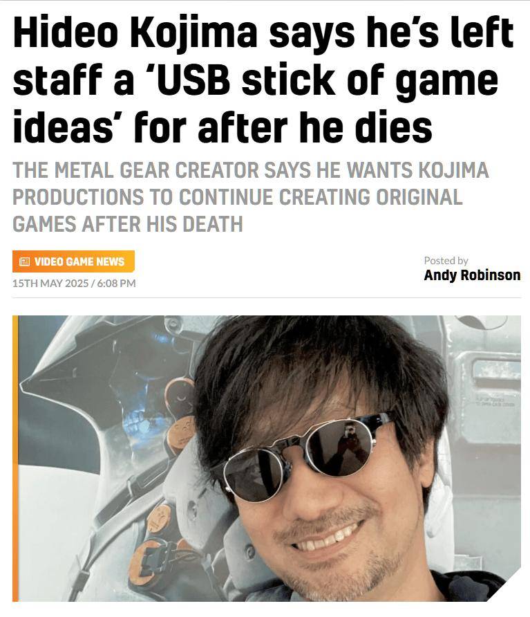 小岛秀夫透露:“我把所有的创意写在一个 U 盘上,交给了我的私人助理,等于是留了一份遗嘱。或许他们可以继续在我去世后继续为小岛工作室贡献作品…… 这是我最大的担忧:小岛工作室在我离开后会变成什么样?我不希望他们只管理我们现有的 IP。”