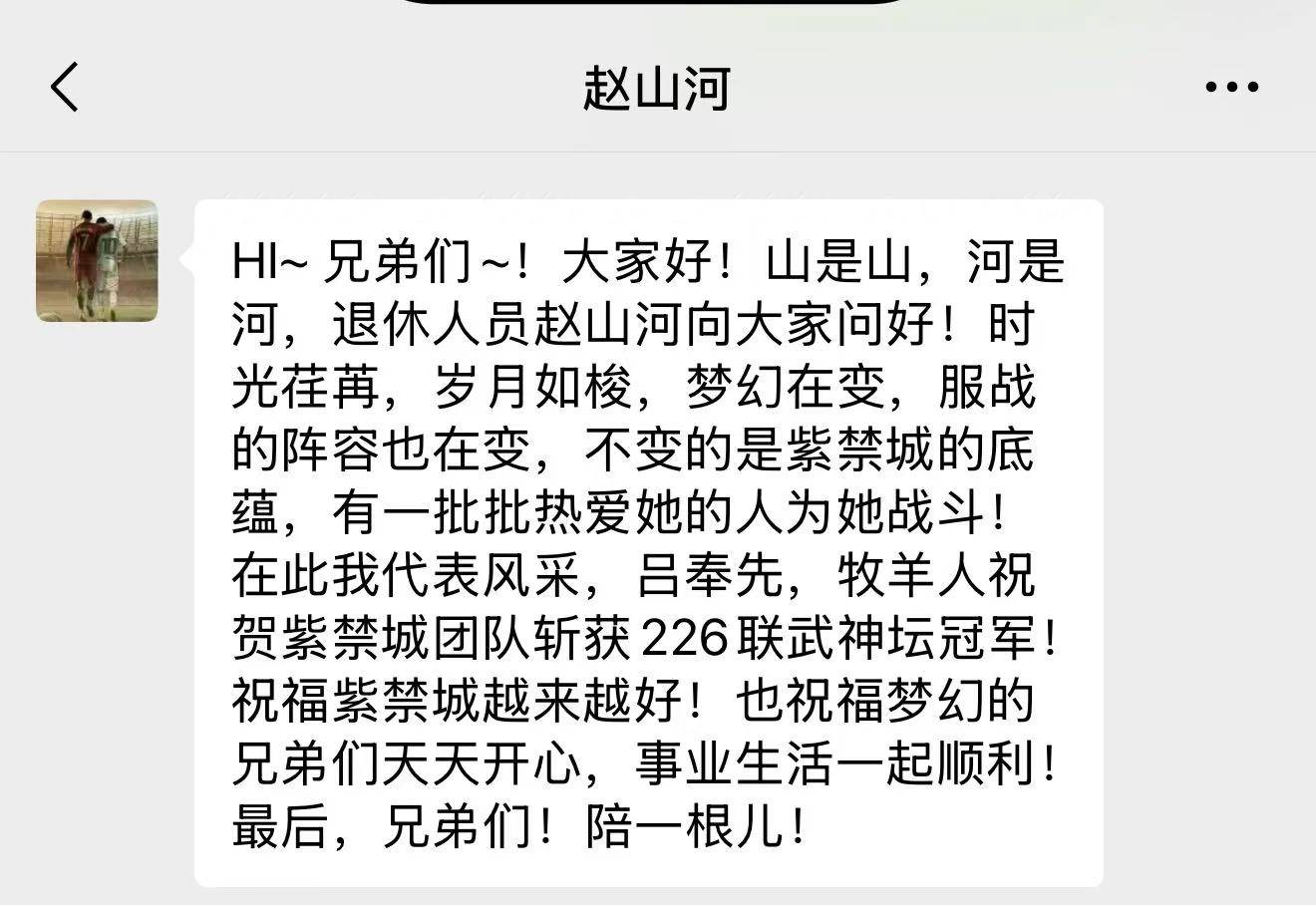 让人意想不到的是,紫禁城历任城主也发来夺冠贺电。下面,就给大家复盘一下吧!