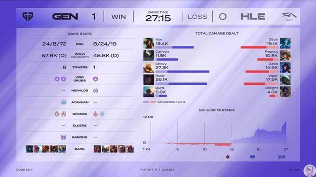本周LCK的第一场比赛就是焦点战,也是目前韩国赛区的最强之战,GenG对HLE。第二赛段的揭幕战正是GenG击败了HLE,开启了自己的14连胜之旅。而在很多人看来今天的HLE也是挡在想要18-0全胜的GenG目前的最后阻碍了。原以为这会是一场难解难分的对局,结果没想到第一盘GenG就把HLE速通了。