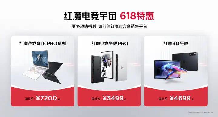 正值618,红魔游戏本、电竞平板,通通限时直降,更有散热器、氘锋能量卡、氘锋Mini等生态周边产品,以超低福利价登场,助力游戏玩家电竞装备升级。