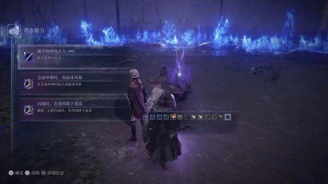 开篇提到过《黑夜君临》是建立在《艾尔登法环》的基础上改的“搜打撤”类型游戏,如果玩过本篇的话,战斗和探索的基本玩法都大致相同,应该能很快上手。只不过在一些地方存在着一些小变动需要适应一会儿,比如喝药指令固定为方块键、而使用道具/切换道具则是十字键的上下键,刚上手的时候经常按错。此外在装备上也有进行调整,比如魔法与祷告都绑定在法杖与护身符这些法术媒介上、稀有度高的装备还会附带一些诸如“连续攻击时恢复HP”、“缓慢移动时释放龙雷”这样的被动效果,这部分的体验会与本篇的思路有许多不同。