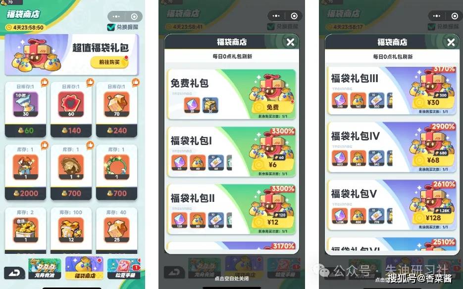 一个是福袋兑换商店,一个是福袋礼包的商店。