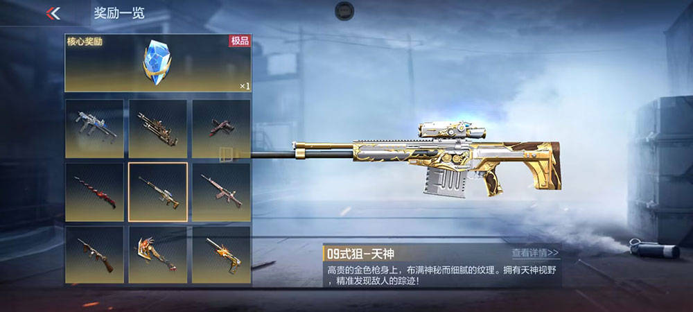我们利用排除法来选择。首先排除掉所有的排位赛武器,这类武器的获取途径非常简单,成本也不算高。前往旧兵工厂可获取基础版武器,再去商城购买觉醒宝箱即可。