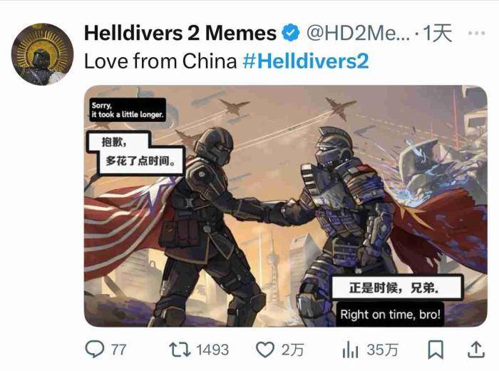 这场中美网友大团结在北京时间30日晚迎来了圆满的结局,《绝地潜兵2》官方宣布玩家保卫上海成功,外星人已经撤离地球。公告中称:荣都与自战斗开始便屹立不倒的城市仰齐浜成功击溃光能者舰队。