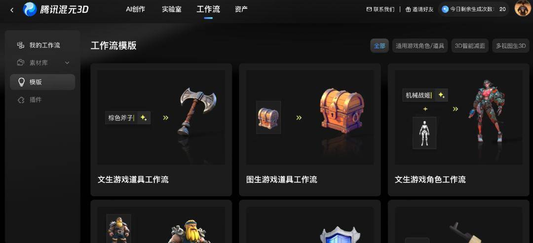 在AI创作中,开发者可以使用文生游戏工作流、图生游戏角色工作流。创作出想要的游戏3D图形,譬如生成一把棕色斧子或宝箱。