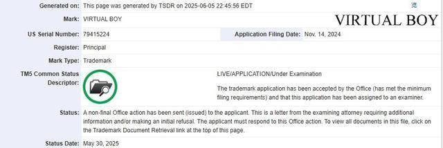 任天堂近日在美国提交了“Virtual Boy”商标申请,注册类别明确包含“头戴设备”——这一动作不禁让人联想到其坎坷的VR探索史。申请文件基于2024年11月14日的日本注册,却在2025年5月30日遭美国专利商标局(USPTO)以“商标近似”为由驳回。