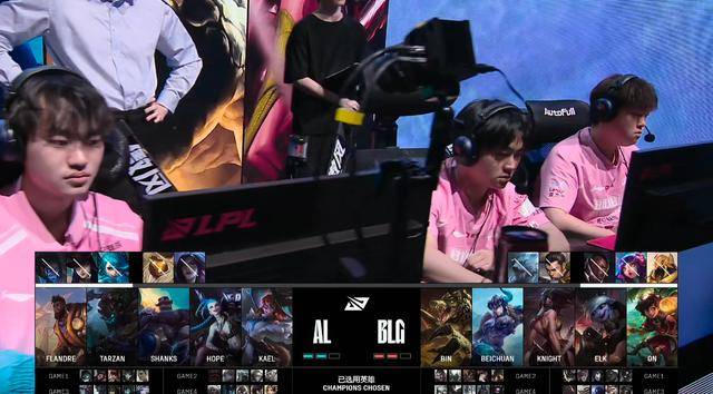 比赛16分钟AL控下第三条小龙,两队河道打团BLG打出2换3。这波团过后两队选择互换资源,BLG控下小龙,而Tarzan在上路控下厄塔汗。双方互相发育打到25分钟,Tarzan控下大龙并打赢团战,AL直接一波团灭BLG,在27分钟赢下比赛。