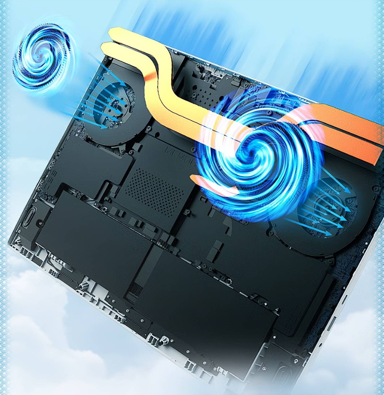 凭借搭载2x冰鲨风扇+翼型环流鳍片,配合纳米相变散热硅脂实现了涡旋动力风道,让散热效率显著提升。