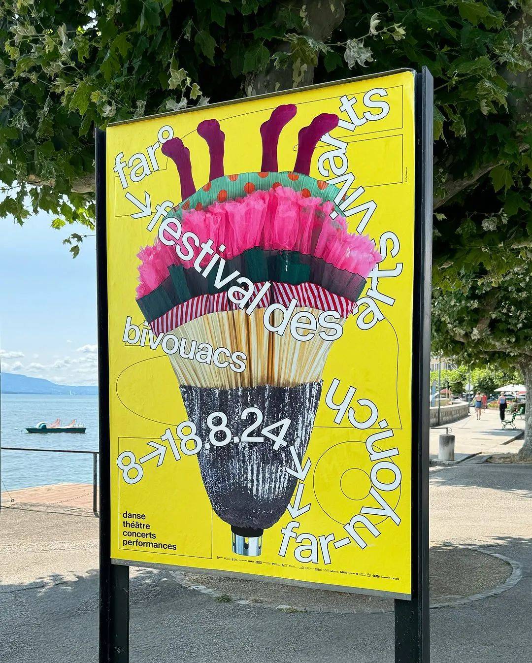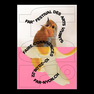 比如他们为 2024 年第 40 届 Far° 活人艺术节和工厂制作的视觉形象和宣传材,就重点突出了瑞士和国际当代表演艺术界的艺术家的项目。