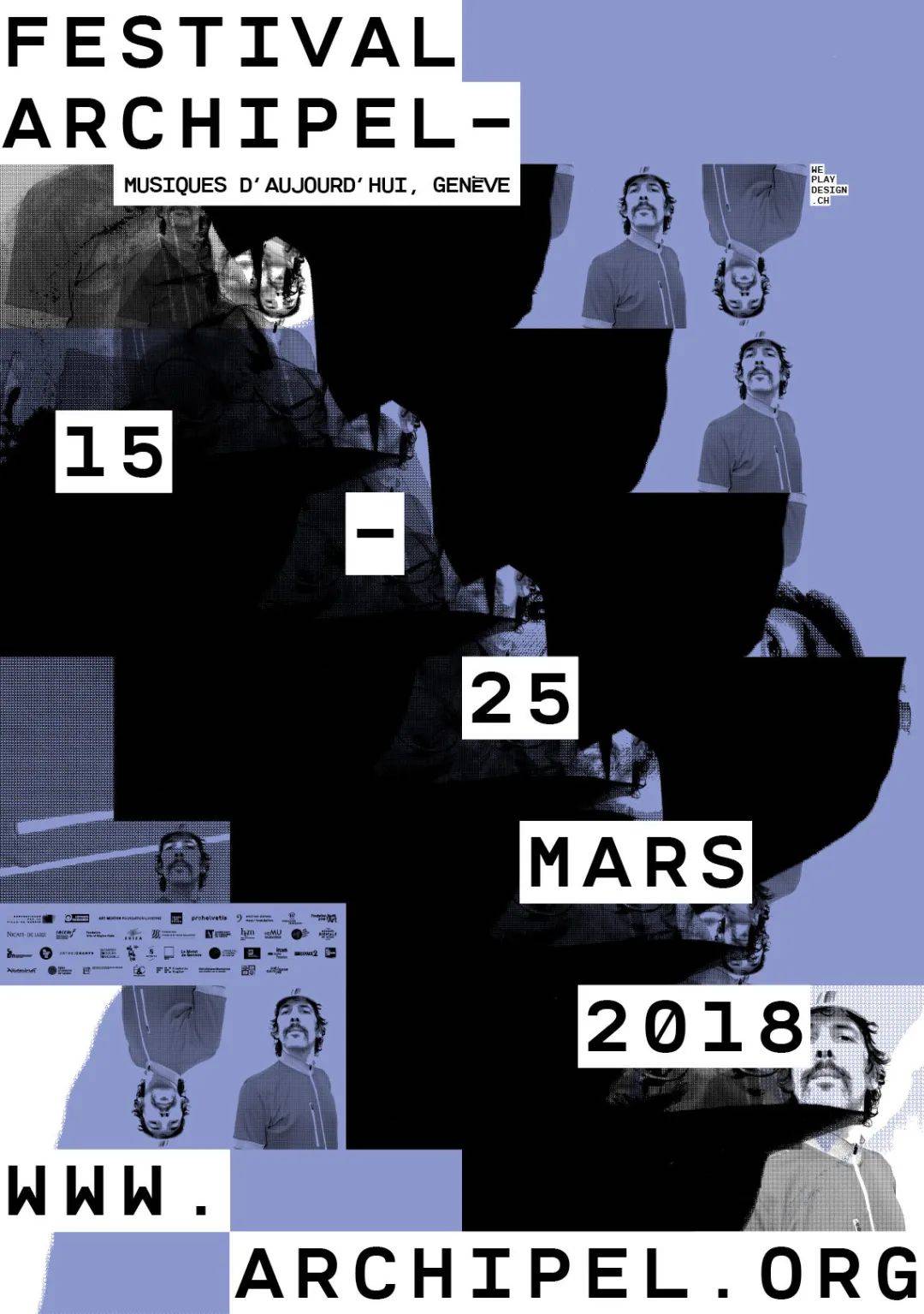 相信直觉,依凭直觉来设计,总有可能“玩大了”,但是 WePlayDesign 认为如果能够接纳这些意外,它们就会转化为惊喜。WePlayDesign 为 2018 年在瑞士日内瓦举办的“群岛音乐节”(Festival Archipel)系列活动和音乐会设计海报时,就创造过这样的惊喜。