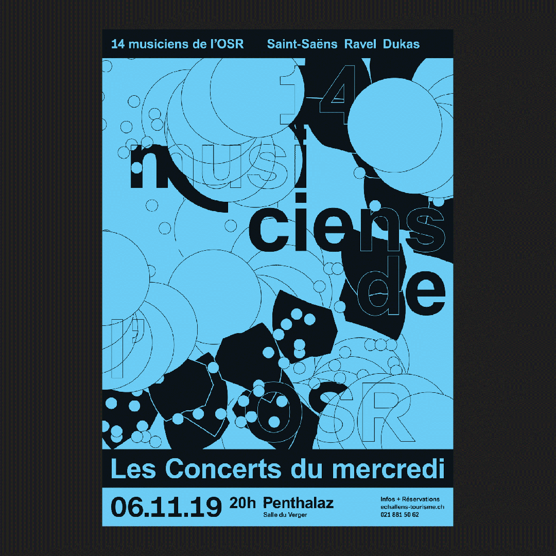 另外,WePlayDesign 喜欢把设计当做游戏,正是这种工作方式激励他们去设计出那些他们从未想过的东西,做一些设计师本人觉得好玩、会让受众感到有意思的设计。WePlayDesign 为 2019 年 Les Concerts du Mercredi 古典音乐会节制作的视觉标识就他们和设计程序“玩起来”的一次实践。