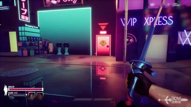 右侧的自动售货机会爆炸,建议不要用刀砍,往前走拿到副武器后,用手枪远程攻击,或者按住鼠标右键+F键,可以扔出武士刀。打碎售货机可以获得一些株札(货币)和血瓶;