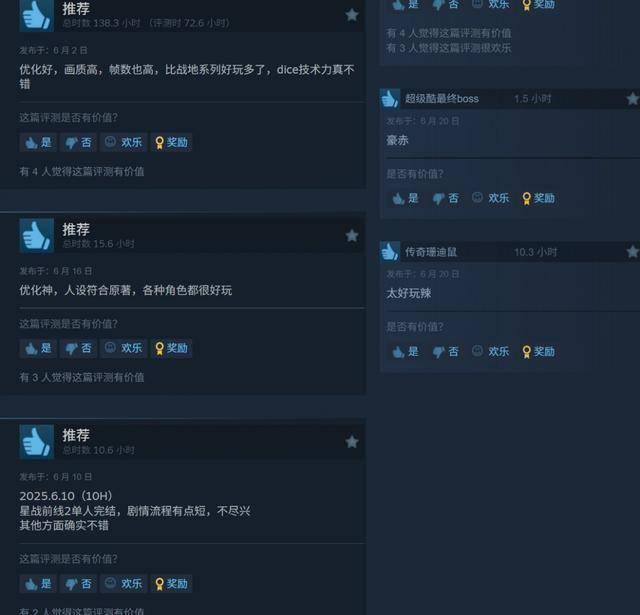 优化好,画质放在今天也是顶尖水准,人物建模还原而且很精美,武器种类多,光剑战斗好玩,成就了一款非常好的《星球大战》游戏。日前该作在Steam上获得玩家“特别好评”评价。过去30天内有5233篇评价,有91%的玩家给出了好评。