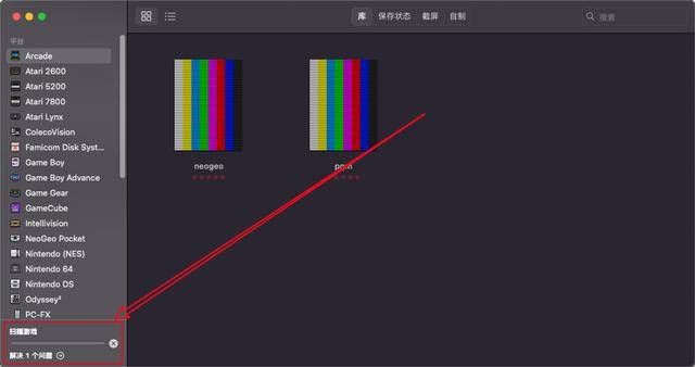 接着,勾选文件,选择“Arcade”平台,点击应用,就可以正常识别了。这一步是强制让 OpenEmu 识别 BIOS。