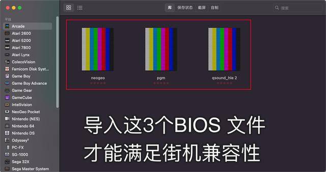 根据我的实测,OpenEmu总共需要导入3个街机 BIOS,操作都很简单,文件已经放进整合包里。