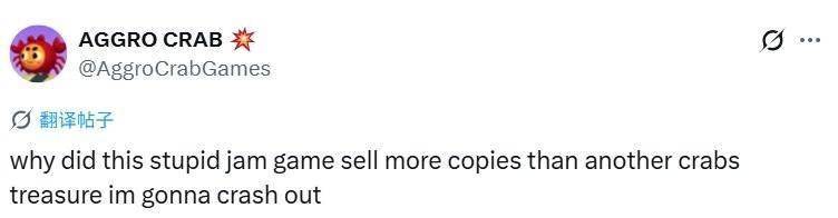 “为什么这个愚蠢的果酱游戏卖的比《蟹蟹寻宝奇遇》好!我要崩溃了”官方发文调侃。
