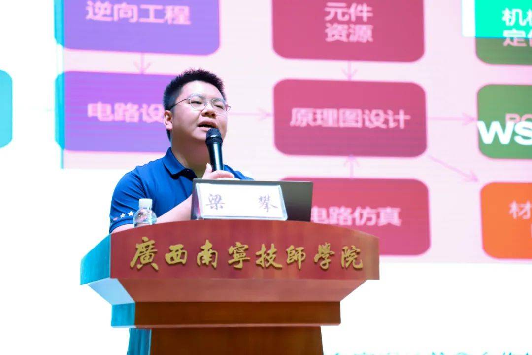 6月23日,广西南宁技师学院学生活动中心大礼堂座无虚席,800余名师生共同聆听了第45届世界技能大赛电子技术项目冠军,第46届世界技能大赛电子技术项目中国国家队教练,95后正高级实习指导教师,高级技师,享受国务院政府特殊津贴专家梁攀的专题报告会。这位从技校生逆袭成为世界冠军的青年工匠,以“弘扬工匠精神 成就出彩人生”为主题,用质朴的语言和生动的故事,分享了他从焊台旁默默耕耘到世界领奖台熠熠生辉的奋斗历程,为在场师生带来一场关于坚持、热爱与突破的青春励志报告。