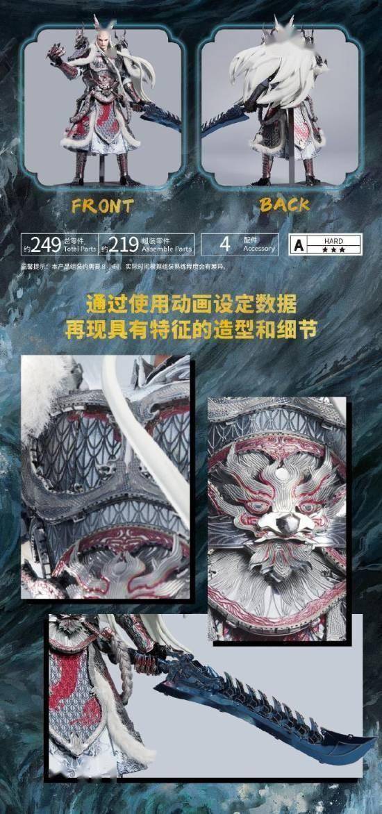 据悉,本模型组装零件约219个,总零件约249+4个配件,成品尺寸约为178mm(含头模),售价329人民币。