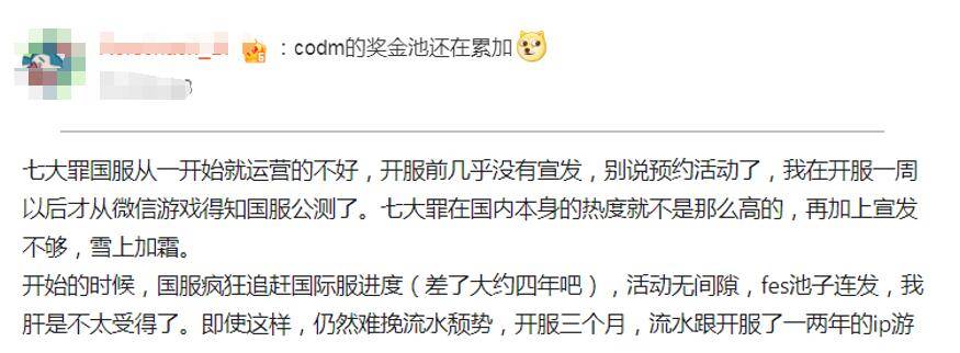 对于游戏的停运有网友就调侃,《使命召唤手游》的奖金池还在累加,因为很多和《使命召唤手游》联动的游戏转头就凉了,《七人传奇》在4月份才和《使命召唤手游》进行过联动。