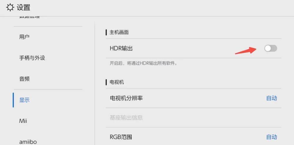 自动优化HDR:选择「设置」选项,在「显示」中找到「HDR输出」,将其关闭。