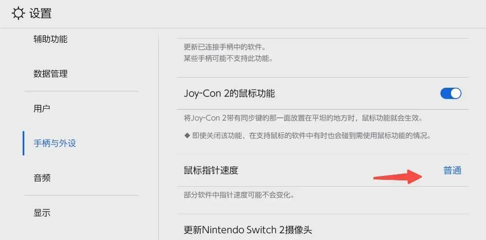 操作方法:选择「设置」选项,在「手柄与外设」中找到「鼠标指针速度」,共有“慢、普通、快”三档可选。
