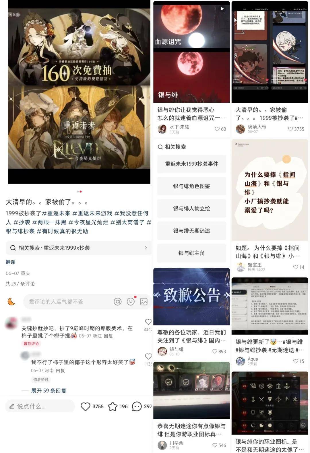此前,曾有玩家控诉《银与绯》的宣传图与Q版漫画抄袭了《重返未来:1999》,特别是TapTap和小红书上,对此有不满情绪的玩家非常多。
