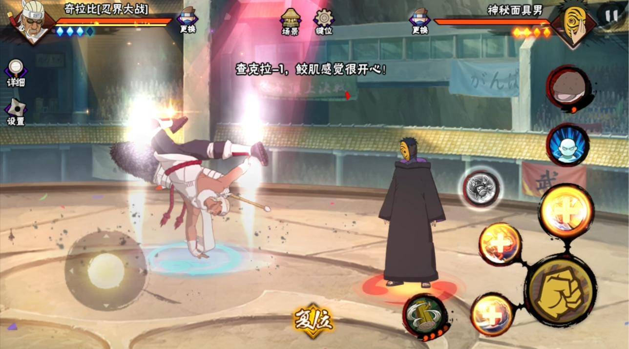再来说一下忍战奇拉比,这个忍者看起来改动很小,就是多了一个消耗奥义点获得强化的子技能,但这个忍者本来就是一个数值怪,主要是有强化限制,你开局需要想办法攻击对方拿到能量条强化。改动之后你可以直接开局强化一次,那你就可以拥有一个10秒一次的霸体技能或者是强度顶尖的奥义,调整后的一技能在常态下也有了扫地,可以非常稳定接技能。