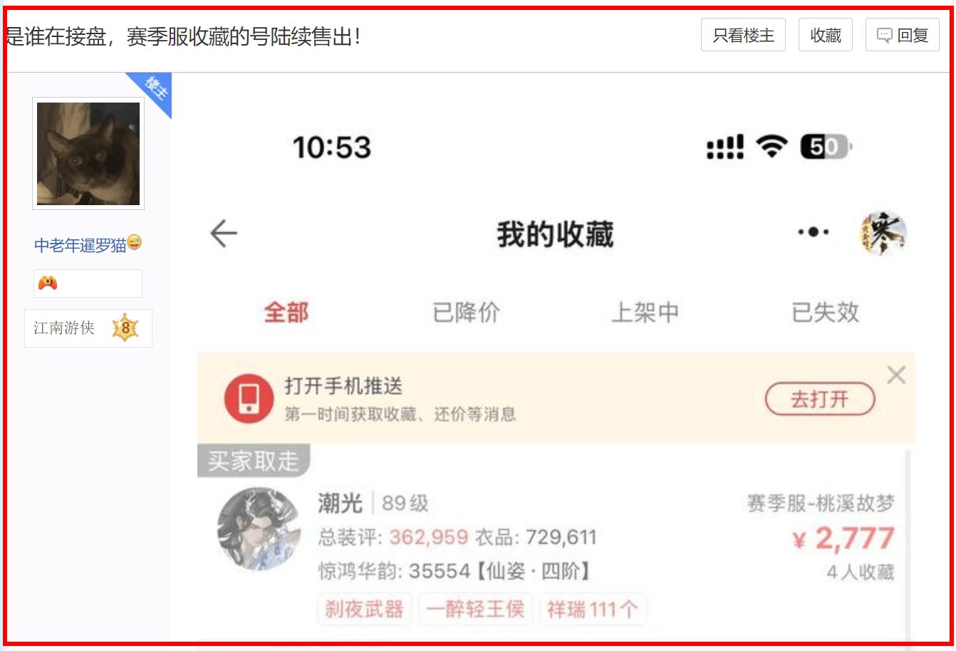 也就是说用老区的账号入驻“超级互通特区”,能够继承过往账号中的时装、祥瑞坐骑、稀有发型等七类外观任选其一,也就是说直接白嫖了好几千!因此想要在“超级互通特区”中玩爽顺便“捡黄金”的网友,自然要先下手为强抢购账号了。